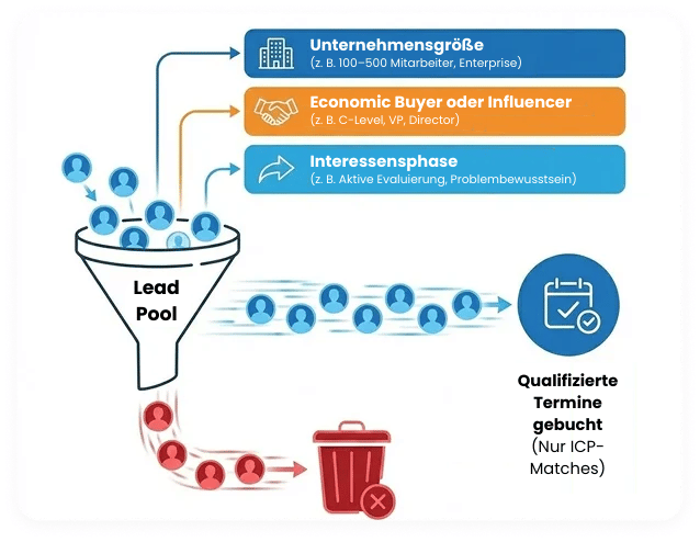 Wir liefern keine wertlosen Leads. Jeder Termin durchläuft unseren strengen Qualifizierungsprozess, um sicherzustellen, dass Sie nur mit Entscheidern sprechen, die sowohl das Budget als auch die dringende Absicht für ein Investment haben.